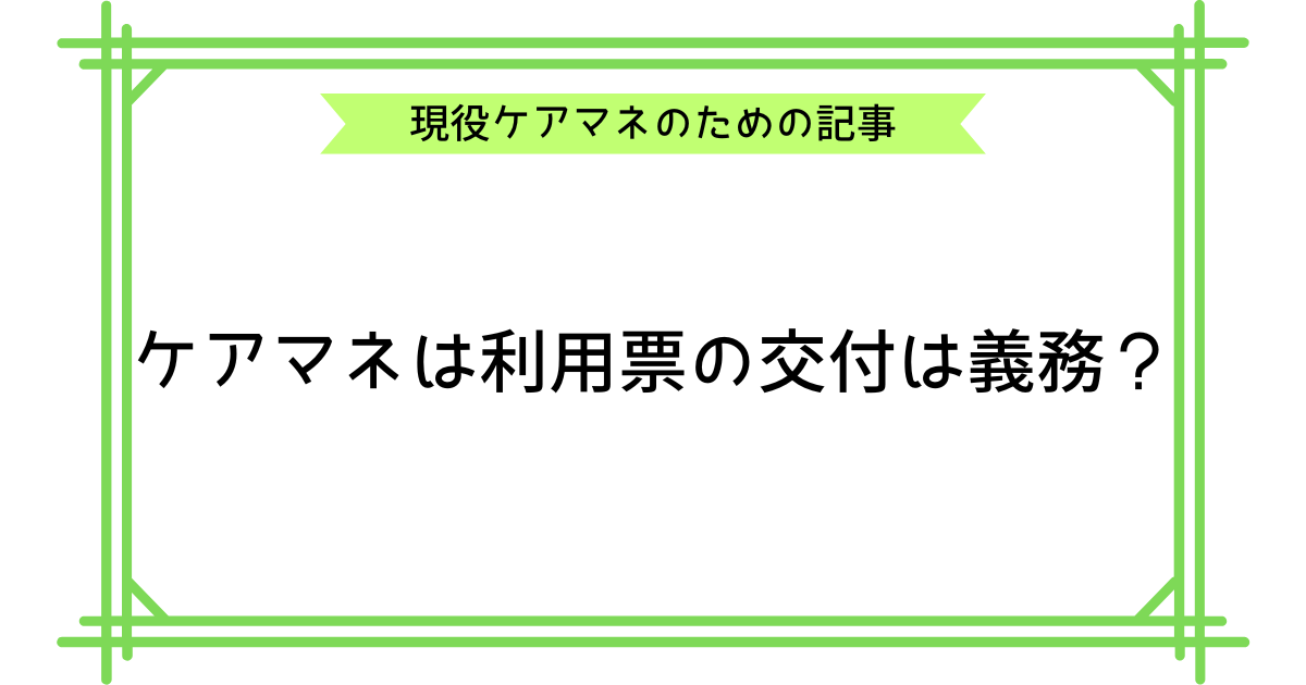 - 利用票の交付は ケアマネの義務 であり、法的にも定められている