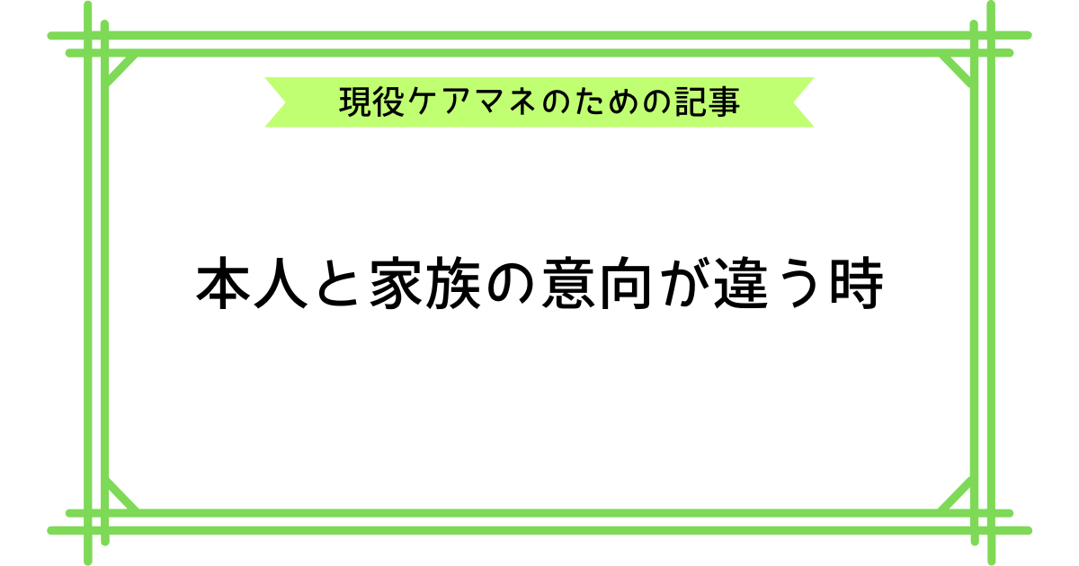 本人と家族の意向が違うのは、ケアマネ業務の中でも特に難しい課題です。