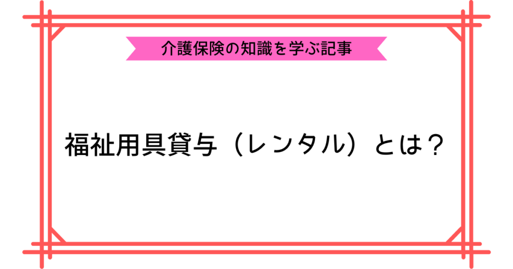 福祉用具貸与(レンタル)とは?わかりやすく解説