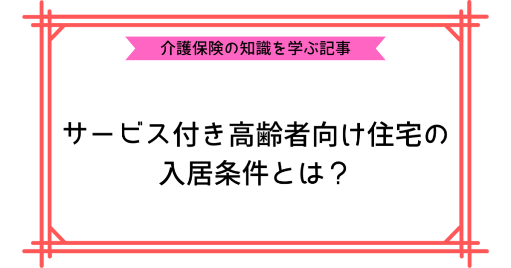 サービス付き高齢者向け住宅の入居条件とは?わかりやすく解説