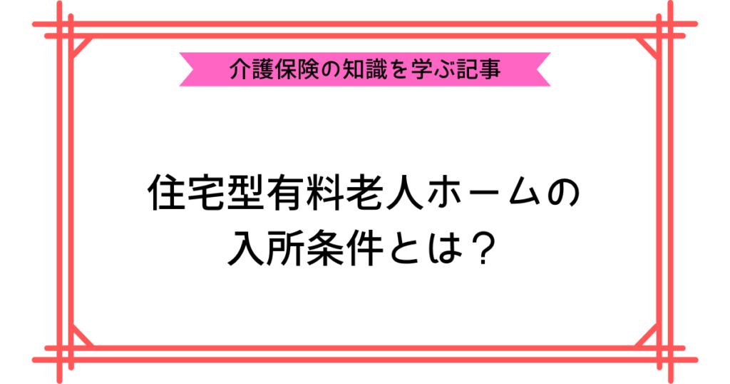 住宅型有料老人ホームの入所条件とは?わかりやすく解説