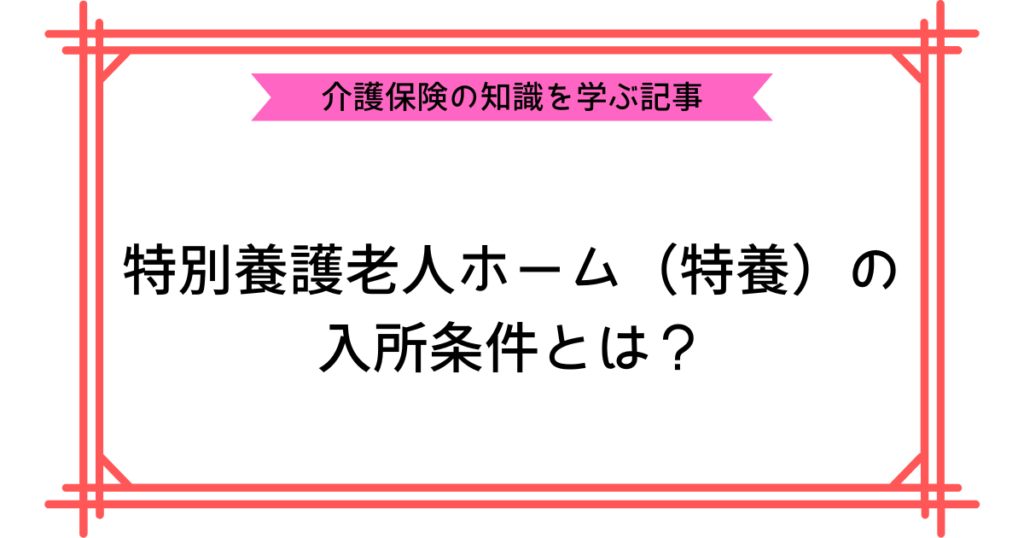 特別養護老人ホーム(特養)の入所条件とは?わかりやすく解説