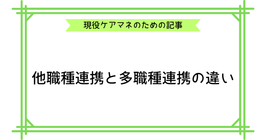 医療や介護、福祉の現場では「連携」が非常に重要です。 その中でよく使われる言葉に「他職種連携」と「多職種連携」があります。 どちらも似たような響きですが、実際にはニュアンスや使われ方に違いがあります。 「どう違うの?」「どちらが正しいの?」... -