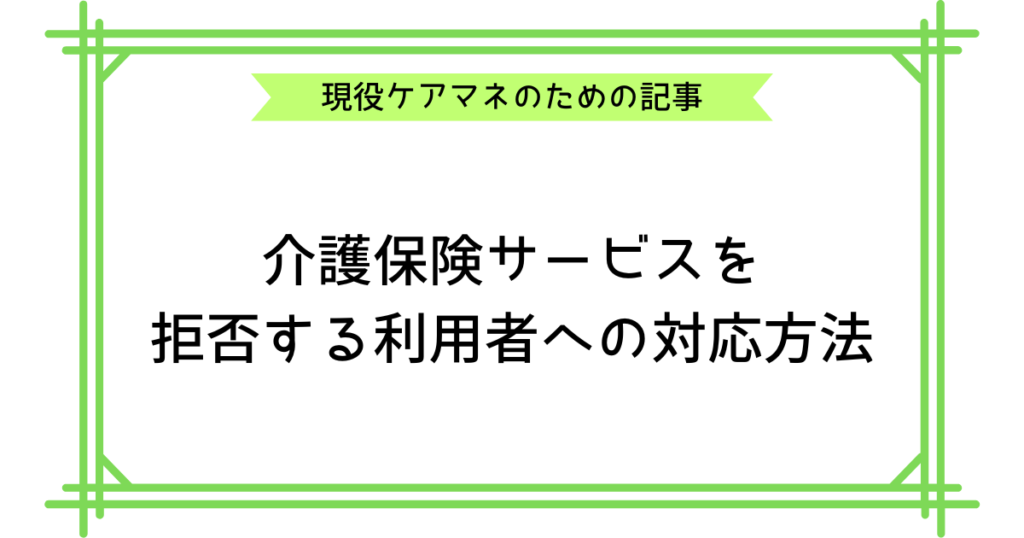 介護保険サービスは、高齢者や家族の生活を支える重要な仕組みです。 しかし、実際の現場では「ヘルパーを入れたくない」「デイサービスは行きたくない」「訪問リハビリは必要ない」と、利用者本人がサービスを拒否するケースも少なくありません。 ケアマ... -