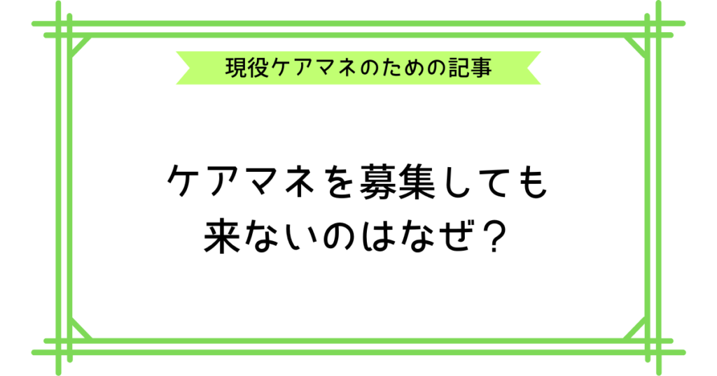 介護業界において、ケアマネジャー(介護支援専門員)は欠かせない存在です。 しかし「求人を出しても応募がない」「募集してもケアマネが来ない」と悩む事業所は少なくありません。 特に居宅介護支援事業所や施設では、ケアマネ不足が経営に直結する大き... -