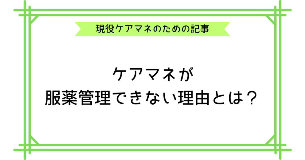 ケアマネジャー(介護支援専門員)は、介護サービス利用者やその家族にとって生活を支える大切な存在です。 しかし、実際の現場では「服薬管理もやってほしい」「薬の確認までお願いできないか」といった要望を受けることがあります。 利用者の安全を守る... -