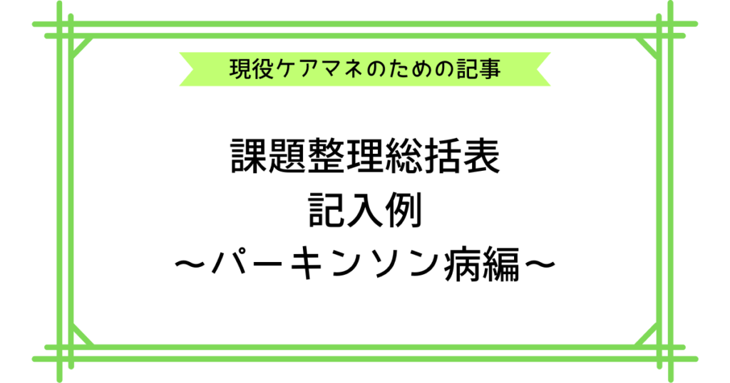 【コピペOK】ケアプランの課題整理総括表の記入例300文例〜パーキンソン病編〜