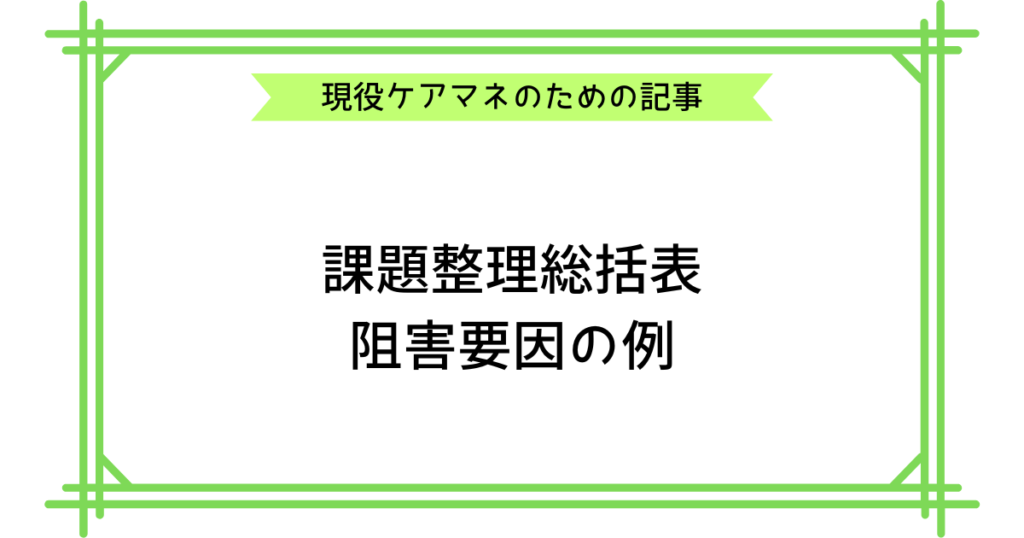 【ケアプラン文例】課題整理総括表の阻害要因を1000例紹介
