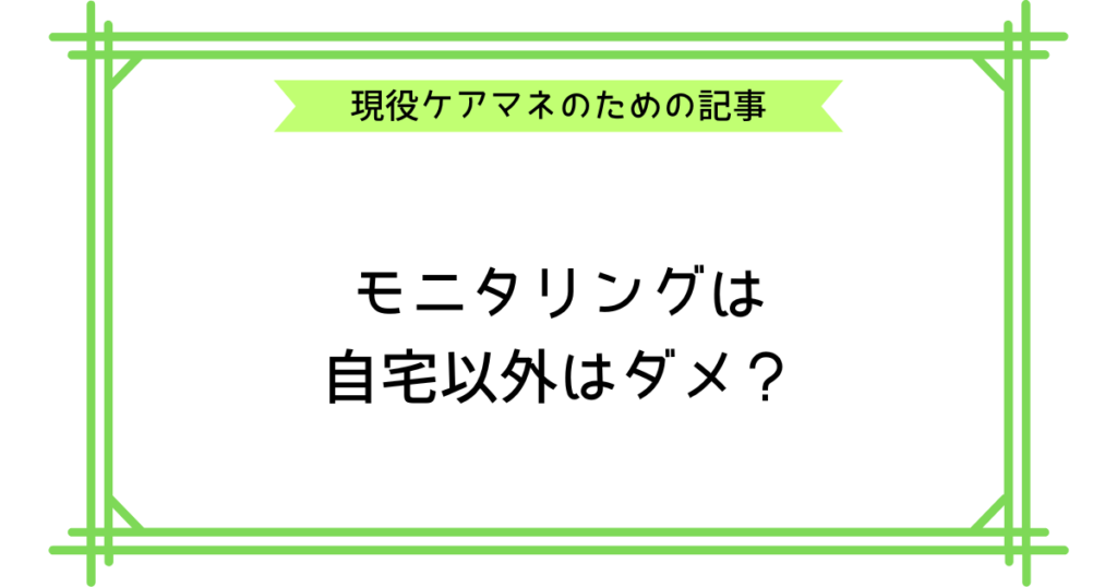 ケアマネのモニタリングは自宅以外はダメ?ルールを解説