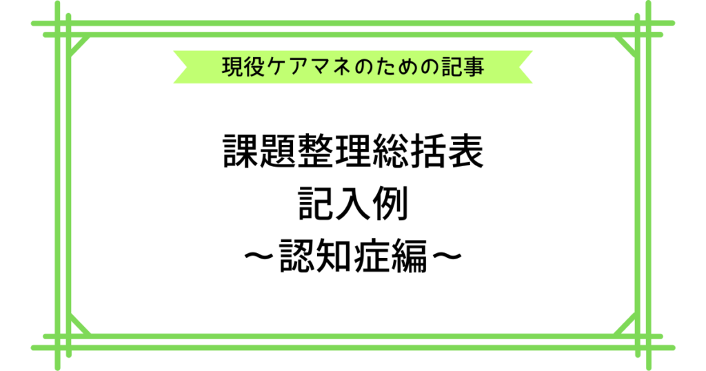 【コピペOK】ケアプランの課題整理総括表の記入例300文例〜認知症編〜